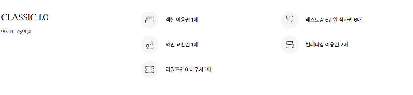 • 본 멤버십의 모든 혜택은 브로슈어 및 홈페이지에 안내된 내용에 한하며, 그 외 추가 혜택은 제공되지 않습니다.
